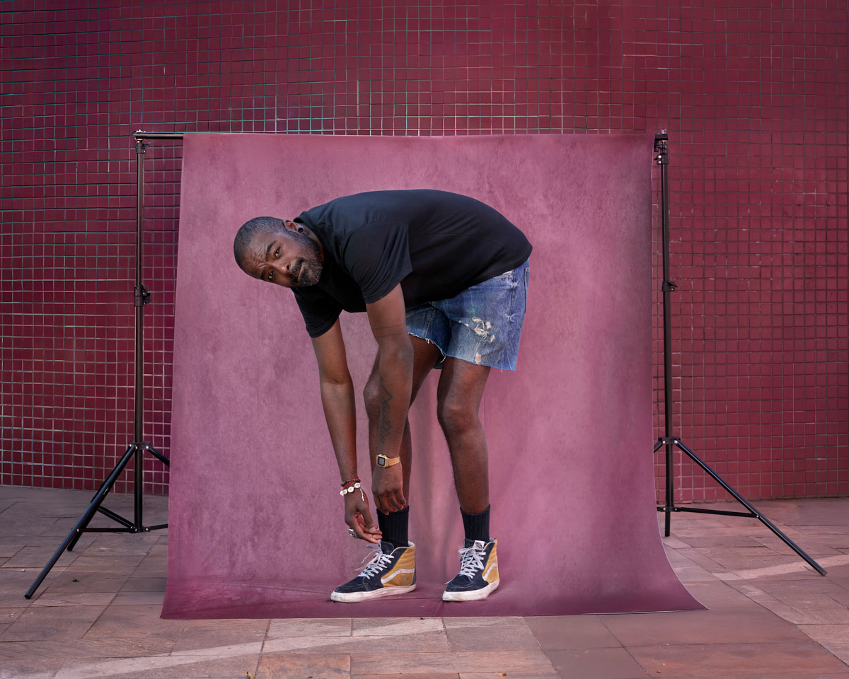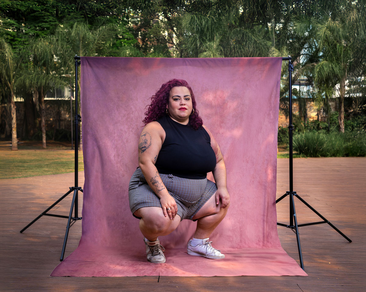 A imagem final mantém parte do espaço extracampo em que o fundo infinito está colocado, ressaltando a importância da paisagem em que os corpos fotografados estão inseridos.
